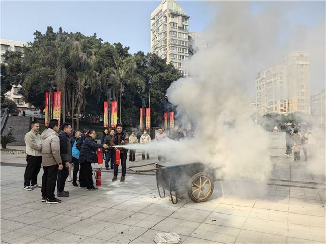 为深入贯彻习近平总书记关于应急管理的重要论述精神,大力加强辖区居民群众及企业商户的消防安全意识,扎实提升辖区整体消防安全水平,2月6日,内江市牌楼市中区街道结合“冬春行动”,开展了消防安全知识宣传培训暨消防灭火演练活动。辖区内“九小场所”商户代表、超市工作人员、居民代表等50余人参加。