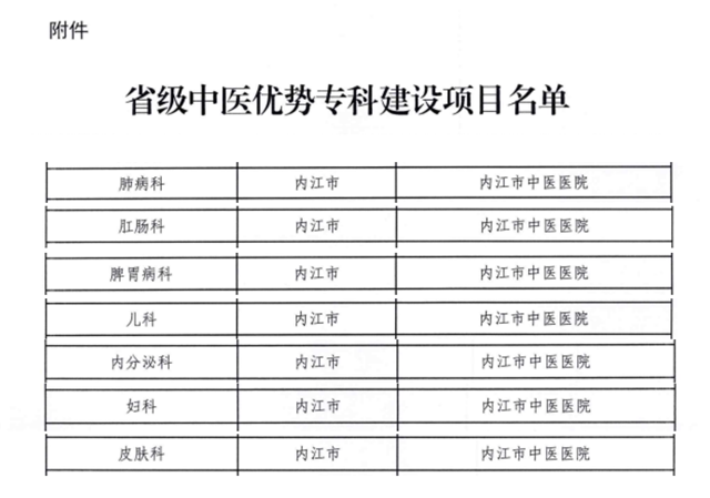 近日,四川省中医药管理局公布了省级中医优势专科建设项目的名单。内江市中医医院肺病科、肛肠科、脾胃病科、儿科、内分泌科、妇科、皮肤科成功入选“省级中医优势专科建设项目”。