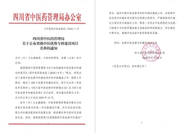 此次内江市中医医院七个专科的入选,既是对过往深耕的认可,更是未来发展的新起点。未来,医院将严格遵循省级中医优势专科的建设标准与管理要求,持续加大重点专科投入与扶持力度,着力构建特色鲜明、优势突出的中医专科集群体系。同时,医院将进一步深化多学科协同,整合资源、提升效能,努力为人民群众提供更加优质、高效、安全的医疗服务,为推动中医药传承创新与区域健康事业发展贡献更大力量。(内江市中医医院)