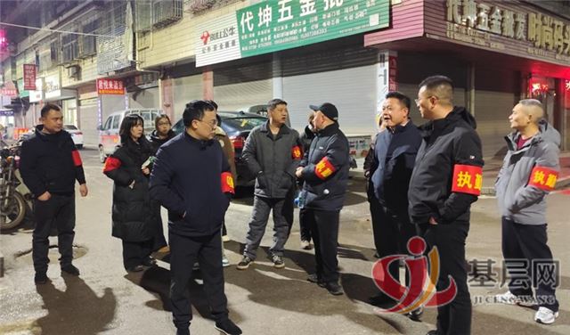 当晚7时许,夜幕降临,镇党委书记邬永兵带领春节值班组,深入镇区主干道、禁燃禁炮重点区域开展巡查。镇党委领导以及应急站、派出所等值班干部同步参战,统一佩戴执勤袖章,沿街区逐一排查,脚步坚定、秩序井然。