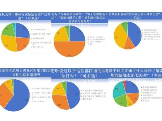 返家乡的实践活动不止于此,川农实践团在四川省都江堰市以问卷的形式开展了社区调研,了解到大多数都江堰居民通过互联网知晓当地的文化活动,对非遗文化仅了解个别项目,如青城武术、洞天乳酒等,更希望亲身体验非遗文化活动并表示愿意参与传播非遗文化。团队总结调研成果,建议社区多开展社区非遗展演及非遗体验课,通过科普短视频加大宣传力度,注重非遗文化背后历史故事,先牢牢抓住文化的根,再进行创新性转化,创造性发展。开展非遗文化活动可以将先辈创造的财富传承下去,造福后辈,营造良好的文化氛围,丰富百姓的日常生活。