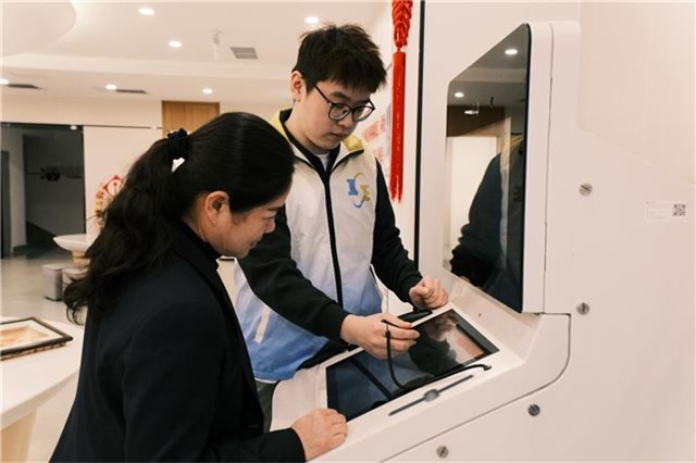▲图为实践队员在便民服务窗口指导老人办理业务,助力银发群体跨越“数字鸿沟”。