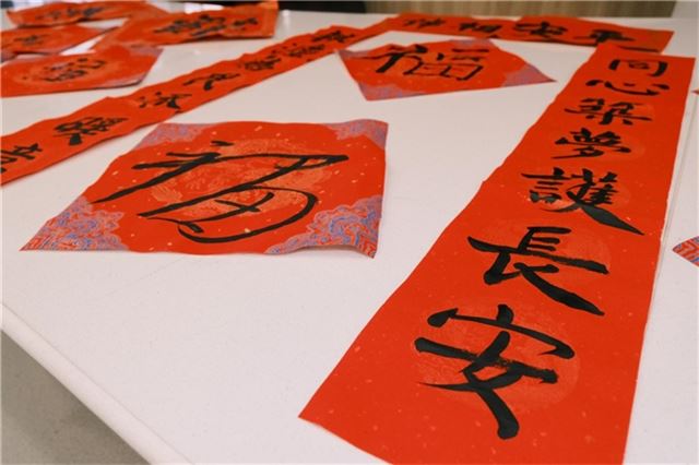 ▲图为实践队员结合社区特色书写的“同心筑梦护长安”新春对联。