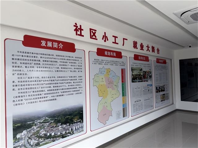 ▲图为锦屏社区内展示的“平利模式”易地搬迁后续产业发展理念。