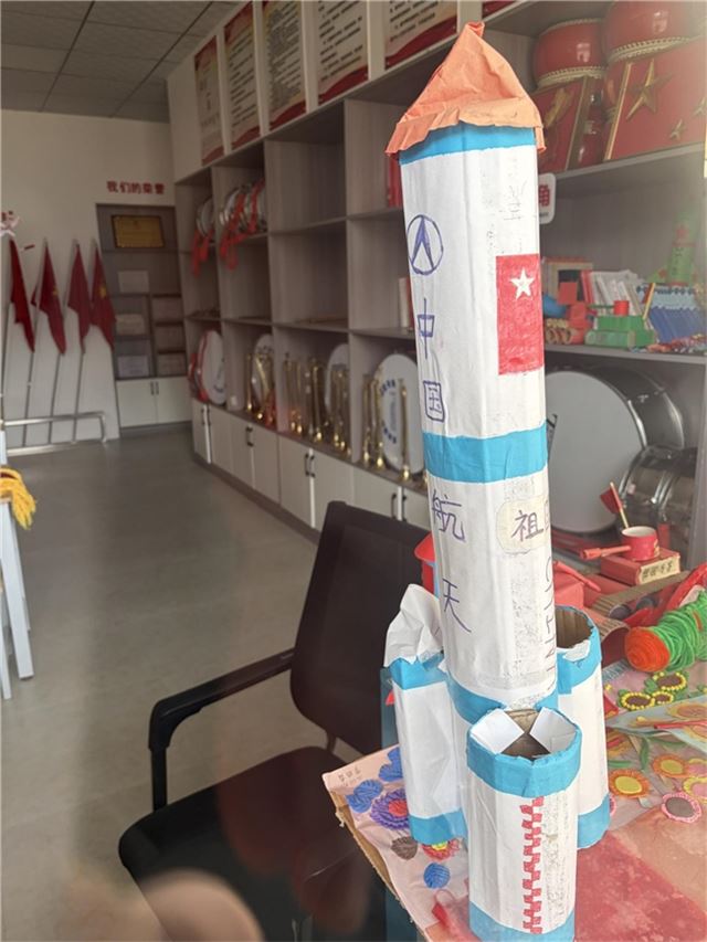 ▲图为老县镇中心小学学生手工制作的火箭模型,彰显着大山深处孩子的科技强国梦。