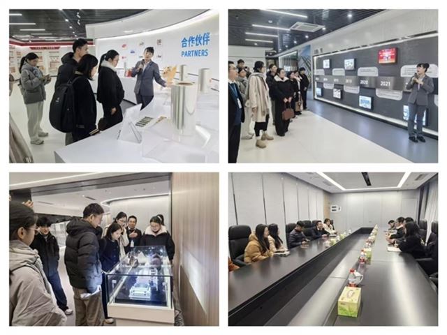 实践队在福清市工信局工作人员的陪同下,走访福融新材料股份有限公司。实践队了解了企业发展历程,人力资源部曹雪飞总经理围绕企业人才需求与培养体系展开介绍,讲解了新材料行业的岗位设置、应届生招聘标准、技能要求,以及企业的师徒传承、岗前培训、晋升通道等人才培养举措,同时分享了团队协作在生产研发中的重要性,让实践队深刻体会到“企业是人才成长的沃土”。
