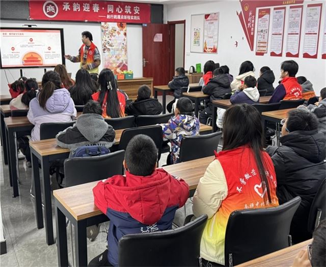 活动伊始,PPT 知识分享环节精彩开启。团队成员徐春雪以 “年” 的古老传说为引,沿着历史脉络梳理春节起源与发展,详解贴春联、剪窗花等传统习俗的文化内涵,结合南北方春节习俗差异案例与图文 PPT、影视片段,让青少年沉浸式感受团圆、敬老等中华传统美德。安全科普篇章中,成员们聚焦春节高频安全风险,围绕烟花爆竹燃放、家庭用火用电用气、食品安全、出行安全及网络诈骗防范等内容,通过数据对比、案例分析普及实用知识与应对措施。