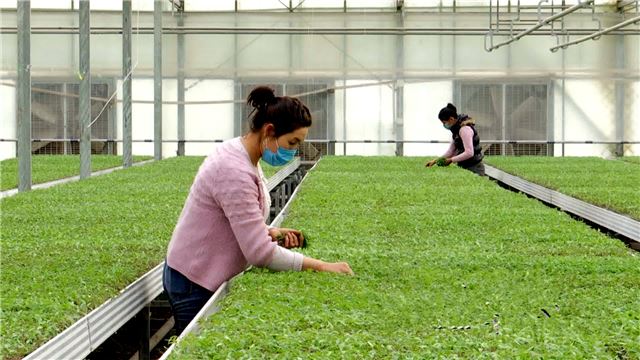 在上班来的近三年时间里,她已熟练掌握了蔬菜、瓜果、花卉的培育及病虫害防治的技术,当上了小组长,现在每个月的工资达1700元,家里的生活条件发生了很大变化。 莎车县新沙漠绿洲农业科技有限公司员工吐布汗·艾买提说:“我在这学会了很多技术,他别感谢党和政府给我们创造了这么好的条件,我以后还会继续努力,更好的掌握技术,将来自己种大棚草莓和大棚蔬菜。”