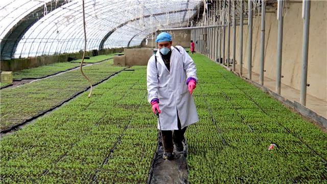为有效预防新冠肺炎疫情的发生,莎车县新沙漠绿洲农业科技有限公司采用每天为员工测量体温两次、全体工作人员分时段用餐、定时为员工宿舍及工作地点消毒,免费发放口罩等有效手段,最大限度地做好疫情防控工作。 笔者走进莎车县扶贫产业园育苗中心,看到工人们正在为繁育的西红柿、土茄子、辣子、西瓜苗等种苗松土,去除多余的叶片。 莎车县新沙漠绿洲农业科技有限公司负责人王家玺说:“通过培训,我公司现有的员工都已基本掌握了育苗、种植、管理、包括病虫害防治的相关技能,现在我们的玻璃仓,每间由2名员工管理,其它育苗温室一人负责一棚。” 吐布汗是塔尕尔其镇尤库日博依拉村村民,是一名建档立卡贫困户。