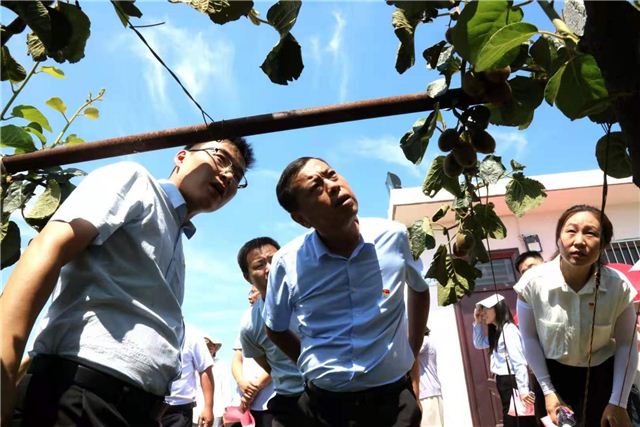7月14日,蒲城县镇(街道)新一届领导班子履职能力提升专题培训班的60名学员来到丰原镇丰原村,在猕猴桃树下,参观学习,交流党建引领,产业带动,努力建设美丽乡村的成果和经验,这种新颖的教学模式,大大地提升了培训效果。