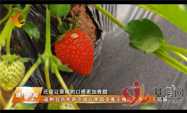 在疏附县吾库萨克镇百果园里,27座大棚草莓进入采摘期,翠绿的植株间,一个个红似小灯笼的草莓绯红鲜亮,令人垂涎欲滴。疏附县吾库萨克镇百果园草莓采摘园负责人王绍瑜:草莓现在已经开始陆续成熟,种植草莓全部采用有机肥和蜜蜂授粉,上下有防虫网,不仅能够提高产量,还能让草莓的口感更加香甜。