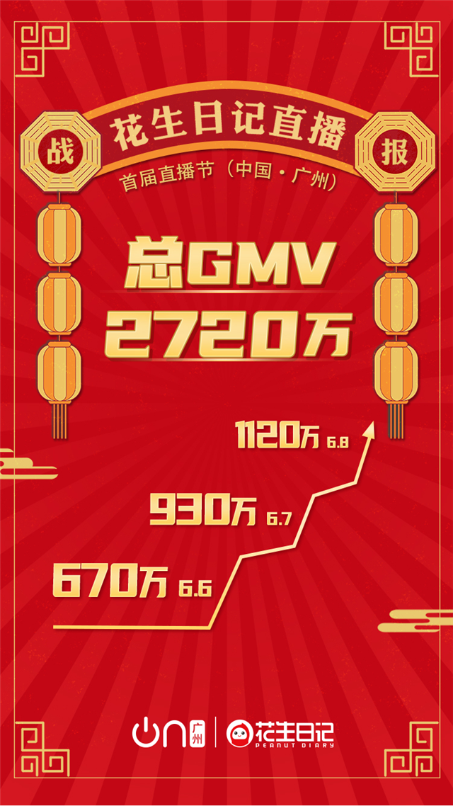 作为广州市商务局选定的参与平台之一,花生日记以直播电商之力,助力经济复苏,为广州将"千年商都"打造成为"直播电商之都"贡献一份力。另一方面,乘着直播的新风,花生日记直播业务也借助本次直播节,获得了高速发展。