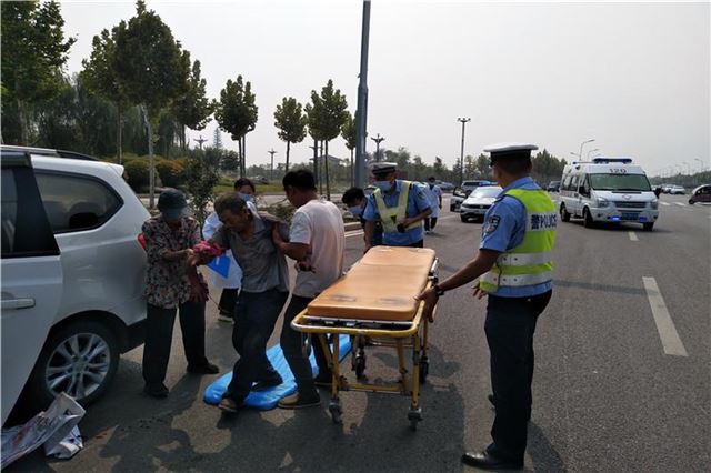 在毛堌堆中队执勤民警的带领下,在所经区域的中队的通力配合下,原本需要半小时的路程,最终仅用了7分钟,警车和救护车辆在平原路汉梁文化公园北侧顺利相遇,李伟峰等人赶紧配合医护人员对伤者进行转运,第一时间到救护车上先期接受院前治疗,随后引导救护车辆赶往医院。据了解,目前伤者无生命危险,正在医院接受进一步的救治。