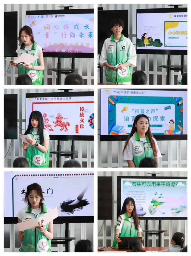 实践团队成员来自该校数码艺术学院开设的六个专业,他们为冶山街道七彩假期暑托班儿童打造多维度、综合提升的美育课堂,用美育做教育的浪漫注解,通过开设“奇石妙想”石头画创作课、乡村振兴彩绘课堂、“写好中国字”书法课堂、“歌声颂祖国”音乐鉴赏课等趣味特色课堂,让学生接触和学习各种文化艺术知识,提升他们的艺术素养和审美能力。