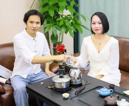 图:董事长陈伟燕与国画大师刘少伟达成战略合作伙伴