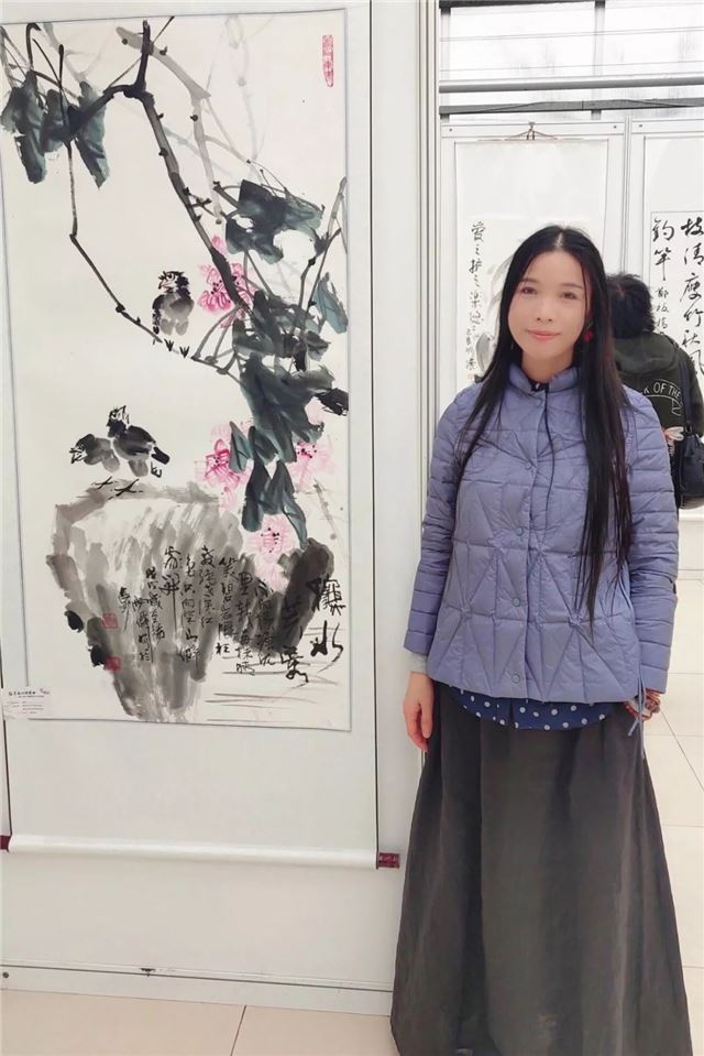▲尚仙画作《秋水芙蓉》入选第六届中国廉政文化书画展在京展出