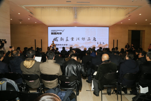 2019年12月8日上午,北京,中国政协文史馆,“翰墨风华——臧新义书法作品展”隆重举行。七届全国人大常委、法律委员会副主任、中国政法大学终身教授江平,国务院参事室原主任、党组书记崔占福,国家新闻出版广电总局原副局长张丕民,中纪委派驻公安部纪检组副组长、武警少将王世安、全国政协办公厅三局局长白煜章、国家新闻出版广电总局规划院原党委书记万顺府、中国科教影视协会党委书记兼秘书长季林、中共驻马店市委常委、宣传部长戚存杰、副部长赖小青、黄淮学院党委书记李国胜、北京市文联原党组书记沈强、北京市残联理事长吴文彦、中国报业协会秘书长袁永君、人民日报社经社部副主任武卫政、国际部原副主任刘水明、研究部原副主任夏珺、广告部副主任李彦彬、高级记者王霞光、国家土地督察北京局巡视员于孔让、国资委法规局局长林庆苗、国务院参事室原办公室副主任陈廷佑、国务院法制办外事司副司长李向东等领导;清华大学艺术史论教授陈池瑜、中国书协理事张铜彦、中华诗词学会副会长王改正、人民政协报社《画界》杂志主编刘根长、金盾书画院院长冯书田、中国科学院文联副主席崔承顺、线装书局副总编郝文勉、《文明》杂志社长娄晓琪等学者;恒源祥集团董事长刘瑞琪、著名武学家邱海洋、《中国税务报》副主编陈顺杨、“茅台专家”李龙杰、谷银基金董事长马刚、盛世维博锐国际公司董事长任登岳、北京智慧能源董事长朱占营等企业界及社会友人;刘艺书法研究会名誉会长秦英君、会长仇加勉,副会长孟云飞、王佃启、陈联合,理事田光辉、庄春明、张晓民等社会各界嘉宾近300人出席了开幕式及书法研讨会。