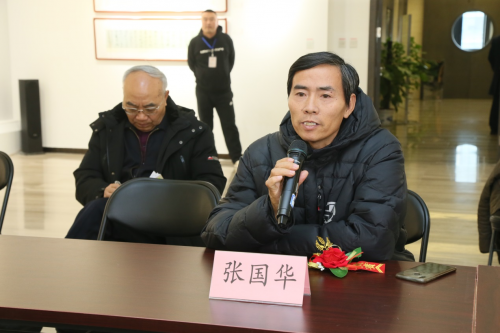 臧新义致答谢辞,他首先感谢所有曾经给予他关心、爱护、支持、提携的师长、领导和朋友。对自己的作品得到那么多的好评与赞赏感到振奋与鼓舞。他表示,正因为书法具有广泛的情感共鸣,使其凝结成为中国人共同的文化情结。而自己作品中蕴含的个人面貌与情感表达,是出自于真心与古人交流,与自己的心灵交流,与时代人文环境交流而生发出来的。最后他用屈子 “路漫漫其修远兮,吾将上下而求索”勉励自己。并表示要坚定社会主义文化自信,有情怀、有担当、有使命感,努力做到“胸中有大义,心中有人民,肩头有责任,笔下有乾坤。”
