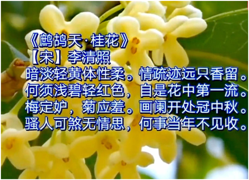 还有诸位诗人赞美桂花的诗词歌赋成千上万,无法统计。如“身在广寒香世界,觉来帘外木犀风。”“揉破黄金万点轻,剪成碧玉叶层层。”“团团岩下桂,表表木中犀。”