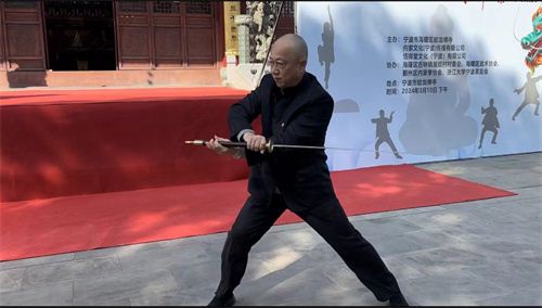 (内家拳第十四代弟子王武明表演陀杀刀。)