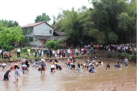 本次乡村运动会的主题是“奋斗拼搏˙绿色健康”,来自全镇的11个代表队300多名队员参加比赛,比赛内容分为50米搬粮食接力赛、二人三足、“齐心协力”背气球、女子跳绳比赛、削土豆皮比赛、50米抗旱提水比赛、拔河比赛、池塘捉鱼8个项目。最精彩最激烈的当属拔河比赛,运动员们都使出浑身解数,你拉我拽,为了赢得比赛努力拼搏,赛场上人声鼎沸,扣人心弦,赛场外观战者助威声、喝彩声、加油声声声不断。