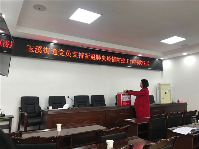 本网讯(刘曾珍 张耀民)2月29日上午,四川省内江市市中区玉溪街道举行党员支持新冠肺炎疫情防控工作捐赠仪式,街道党工委书记陶文江主持仪式,街道党工委副书记、纪工委书记罗恩毅传达了《中共内江市市中区委组织部关于组织党员自愿捐款支持新冠肺炎疫情防控工作的通知》文件精神。