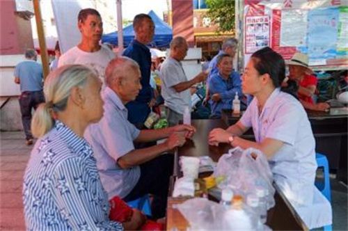 实践队成员为拿山镇居民测血糖