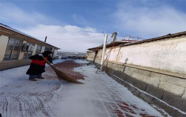 在关注非遗传承的同时,学生们也积极投身社区服务。他们走访村中老人,帮助清扫门前积雪,在寒冬中传递温暖。