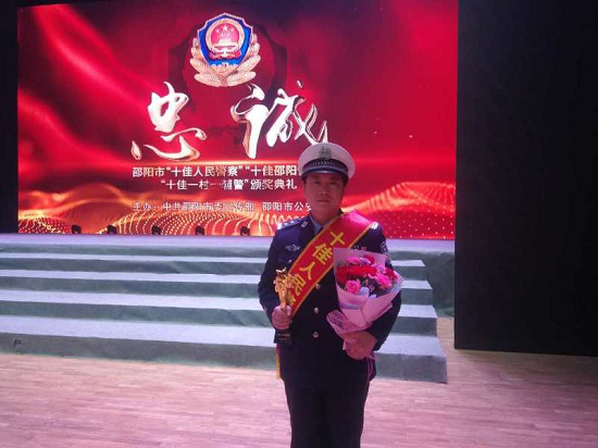 1月31日晚,在湖南邵阳市委宣传部、市公安局联合举办的全市“十佳人民警察”“十佳邵阳快警”“十佳一村一辅警”颁奖典礼上,被评为全市“十佳人民警察”的大祥交警大队红鹰特骑一中队负责人彭依龙,披着马路风采登上了颁奖台,将全市公安交警的博大情怀展现得淋漓尽致,暴雨般的掌声把现场的观众带向道路上的车流、人海。