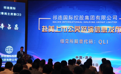 本网讯 2020年6月18日,祁连国际控股集团有限公司(简称:祁连国际,纽交所股票代码:QLI)在酒泉举行首站公募路演信息发布会,正式宣布赴美上市,成为甘肃首家赴美上市的企业。