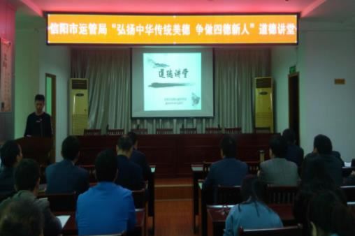 4月23日上午,河南省信阳市道路运输管理局在十楼会议室举办主题为“弘扬中华传统美德争做四德新人”道德讲堂,市运管局100余人参加活动。本期道德讲堂由童威同志主持。活动分为作自省、看短片、诵经典、讲故事、谈感悟、做点评六个环节。