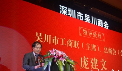日前,深圳京基100大厦五楼宴会厅欢声笑语、客朋满座,来自深圳吴川商会在深圳创业的精英们欢聚一堂,共同庆祝深圳吴川商会年会(第五届)理、监事会就职暨吴川市“添砖添彩”行动推进会在这里召开。市人大常委会主任骆济强,市委常委、宣传部长叶焕泉,市政协副主席王永强,市工商联主席、总商会会长庞建文,深圳吴川商会会长陈阳华,深圳三七二一设计有限公司创始人陈冷,以及来自各界名知人士、企业家、会员欢聚一堂,共话创业取得的丰硕成果,话乡情、友情、亲情。
