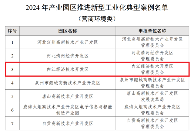 喜讯!工业和信息化部网络安全产业发展中心近日公示了2024年产业园区推进新型工业化典型案例名单,内江经开区成功上榜!