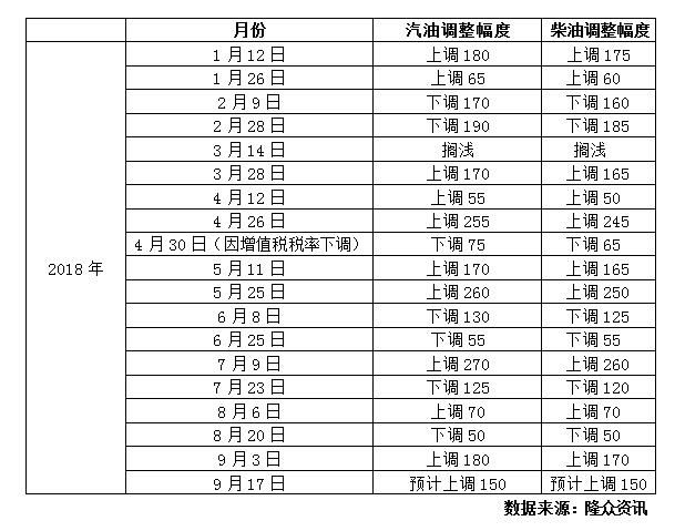 “统计数据显示,2018年至今,国内成品油市场已经历经18次调整,其中10次上调,7次下调,1次搁浅。涨跌互抵后,汽油累计上调880元/吨,柴油累计上850元/吨。本次上调将成为年内第11次上调。”卓创资讯成品油分析师徐娜表示。