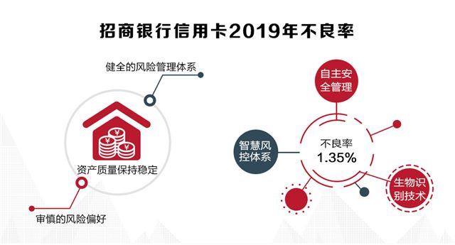 2019年, 受经济和共债风险等方面影响 ,信用卡市场风险不断攀升。招行信用卡立足健全的风险管理体系,秉持审慎的风险偏好,把握业务增长节奏和结构,有效平衡风险和收益,信用卡业务持续健康发展。截至2019年末,招行信用卡贷款不良率1.35%,整体风险可控。