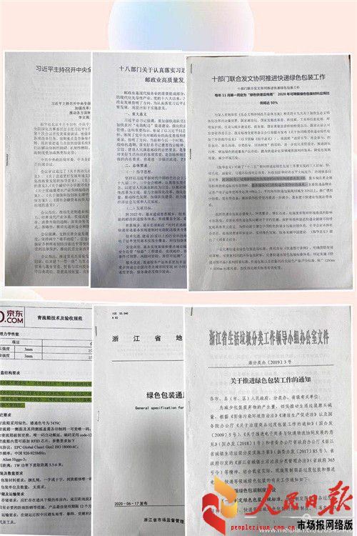 "别看这小小包装箱,真要进入,门槛还不低呢!"周红理拿出一叠近年来中央到地方出台的有关推进绿色包装工作的文件介绍说,2017年中央十部委联发的《关于协同推进快递业绿色包装工作的指导意见》明确指出:到2020年可降解的绿色包装材料应用比例将达到50%,基本建成专门的快递包装物回收体系。浙江省市场监督管理局于今年6月17日发布的《绿色包装通用规范》的地方标准,将于2020年7月17日正式实施。