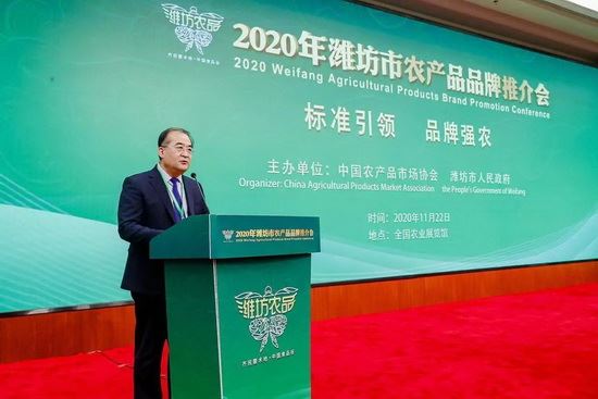 北京讯(记者韩同瑞 黄飞)11月22日,由中国农产品市场协会和潍坊市人民政府联合主办的2020年潍坊市农产品品牌推介会在北京全国农业展览馆举行。国务院原参事、原国家质检总局副局长、中国品牌建设促进会专家委员会主任葛志荣、地月科技集团(宁波)有限公司董事长、中共潍坊市委市人民政府发展咨询顾问张钊出席活动,国务院参事刘志仁讲话;中国绿色食品发展中心副主任杨培生,副市长马清民致辞。