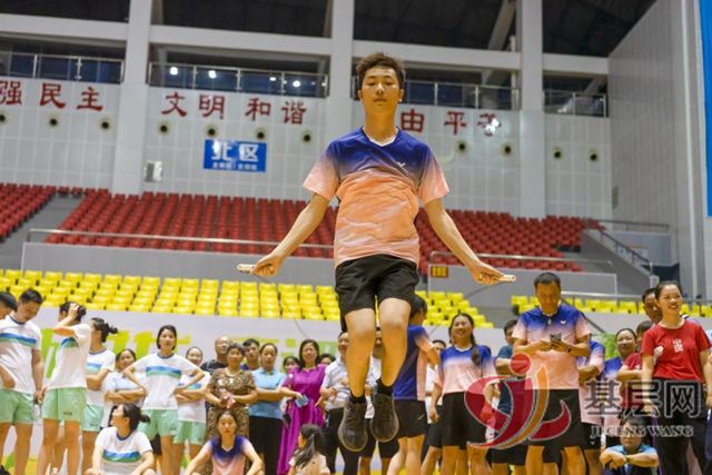 跳绳比赛现场,随着裁判“开始!”的号令,参赛运动员们挥动的绳索如银蛇般飞舞,迅速在队员脚下穿梭,划出一道道完美的弧线。接力赛中,参赛队员起跳衔接有序,落地轻盈敏捷;集体比赛时,队友们配合默契,相互鼓劲加油。欢笑声、加油助威声相互交汇,现场气氛十分热烈。