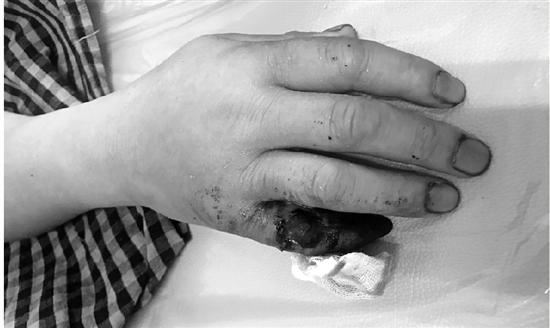 因为没有及时治疗,陈师傅的小拇指不一定保得住。“已经发黑了,可能小拇指会截肢。”王小勇说。