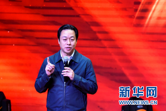 “文化基因唤醒者”赵旭演讲。新华网 发 (付宇鹏 摄)
