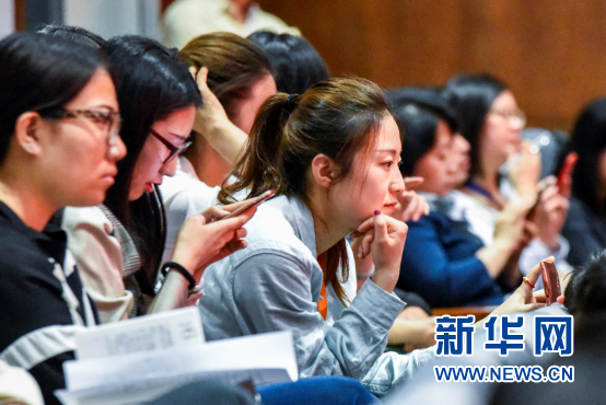 太原成成中学校长聂慧娟围绕“从思政课程到课程思政”发言。 新华网 发 (付宇鹏 摄)