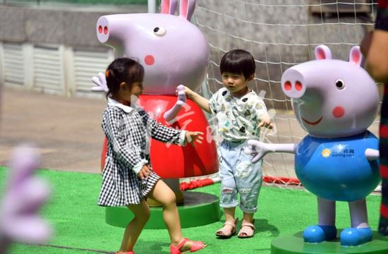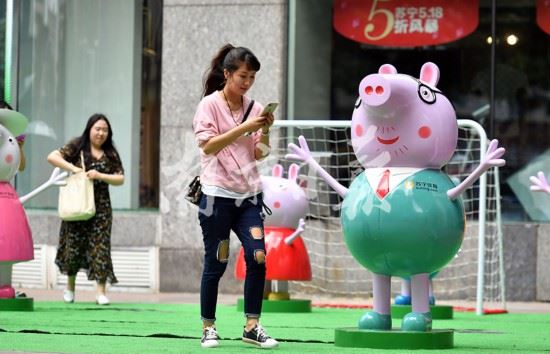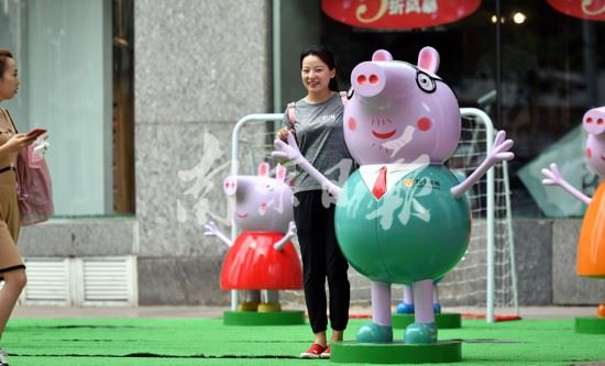 原标题:网红动画玩偶“小猪佩奇”亮相街头