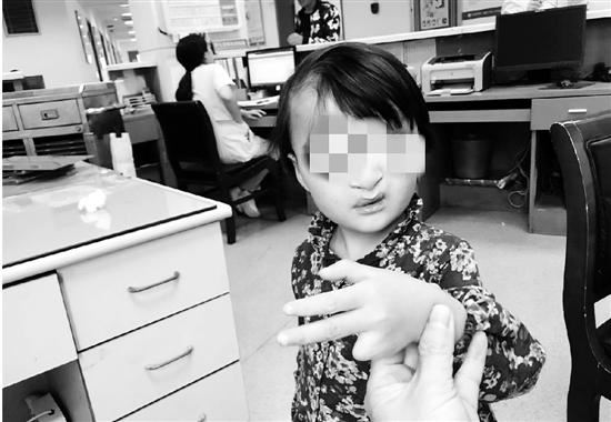 手术前一天,记者在医院5楼的病房里,见到了点点,她正睡着午觉——乍一看,还以为她醒着。两只严重充血的眼球即使在睡梦中,也无法闭上,鼻子连带着嘴巴看上去都有点畸形。相比这些“明显特征”,眉毛断裂、额前斑秃已经不算什么问题了。点点安静地躺着,左手放在胸前,没有无名指和小指。