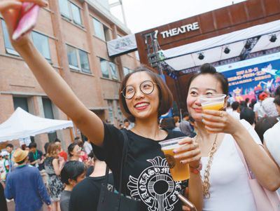 2017年6月18日,游客在“77文创”美术馆园区举办的第二届文创生活节上合影。新华社记者 高静 摄
