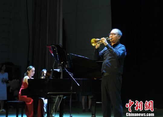 图为小号演奏家陈光演奏《阿鲁秋年小号协奏曲》。 韩冰 摄