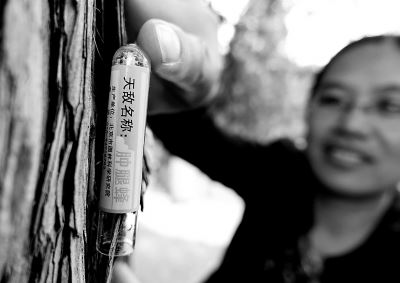 昨天,紫竹院公园投放了2万只肿腿蜂、花绒寄甲等害虫天敌,以“以虫治虫”生物防治技术保护古树。本报记者 吴镝摄