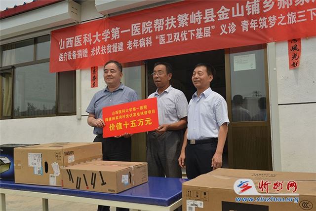 据了解,山西医科大学第一医院帮扶郝家湾村4年来,不断创新帮扶机制、载体,全力实施健康扶贫。在派驻第一书记及工作队员基础上,投资35万元新建了郝家湾村卫生室,每年投资5万元为困难群众购买优质良种,提高作物产量,确保群众增产增收。本次活动现场,该院又向郝家湾村捐赠价值20余万元的医疗设备、办公用品及光伏发电项目所需用品。帮扶成效受到县、乡、村三级的高度评价。