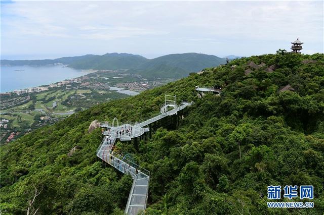 据悉,一条建在海南三亚亚龙湾热带天堂森林公园的海景玻璃栈道预计8月正式迎客。该栈道全长约400米,漫步于此可以将亚龙湾风景尽收眼底。