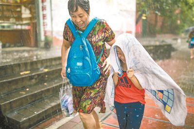 昨下午三时许,海珠区忽降暴雨,行人在大雨中出行。