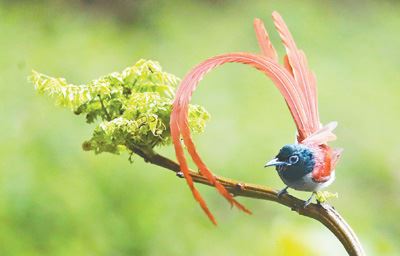 图为重庆红岩革命纪念馆景区的寿带鸟。